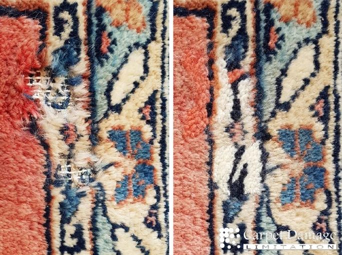 Example of a repaired kashan rug before and after fringe repair while regular maintenance and cleaning an keep your rug looking clean and good there are some instances when professional rug repair and restoration is necessary to offset. If a moth hole is 5mm or less in diameter you can use fusible bonding web to disguise the damage. As moth infestations arent usually covered by household insurance having a few tricks up your sleeve to deal with the damage they leave behind is important. A moth problem can easily become a moth disaster for your rugs and the rest of your home.