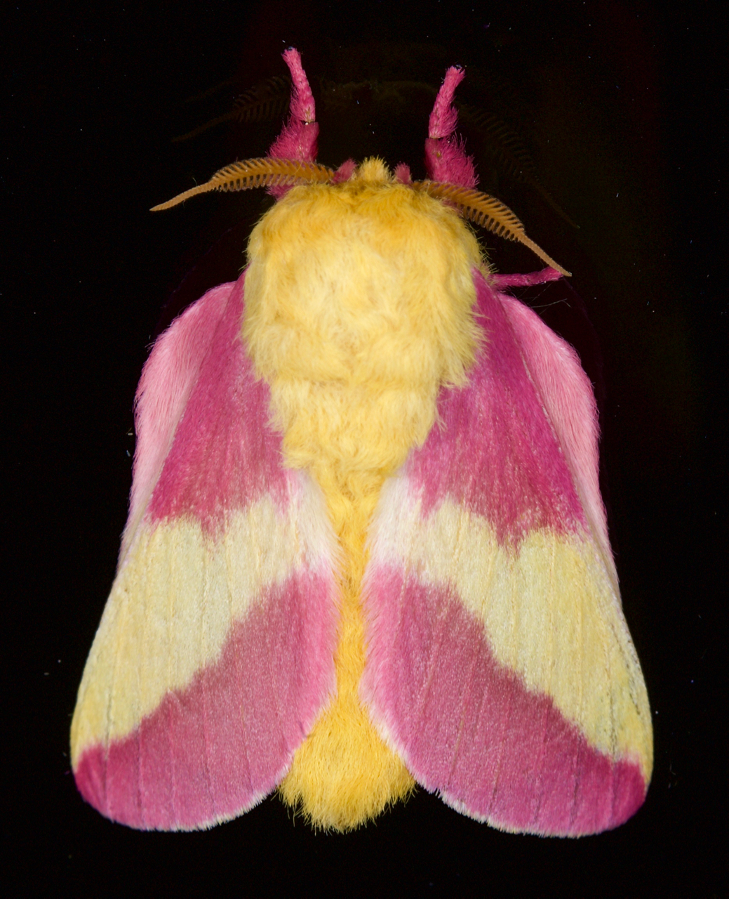 Males have bushier antennae than females which allow them to sense. This milkshake of a moth is actually called dryocampa rubicunda which isnt exactly catchy. The painted lichen moth has a noticeable wing pattern with thick gray and yellow streaks and additional pops of color ranging from pink to red. The pink bordered yellows wings are pink in the back and yellow in front with a small pink dot in the middle of each.